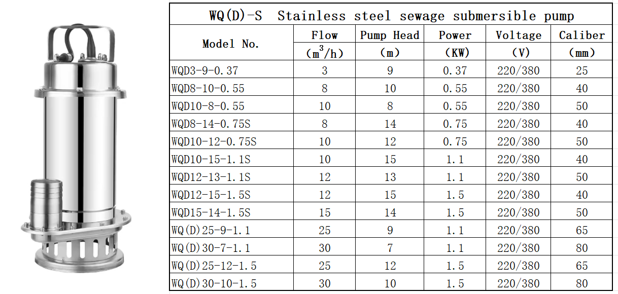 WQ(D)-S Full Stainless steel sump pump1